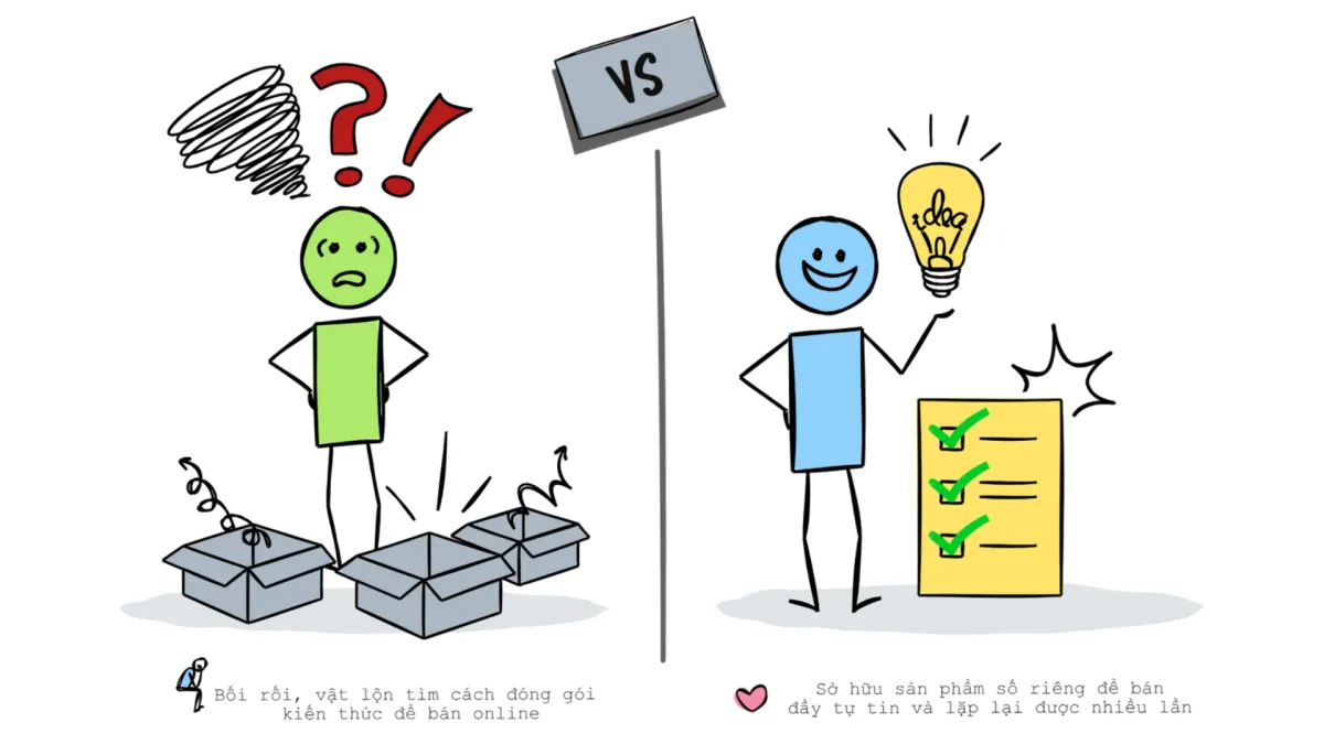 Chúng tôi không dạy lý thuyết, mà tập trung vào hành động nhanh – gọn – hiệu quả với các hướng dẫn và mẫu sẵn, checklist giúp người học dễ thực hành và thấy kết quả. Hướng dẫn từng bước giúp bạn có thể tạo sản phẩm và có khả năng bán được trong 3 ngày.