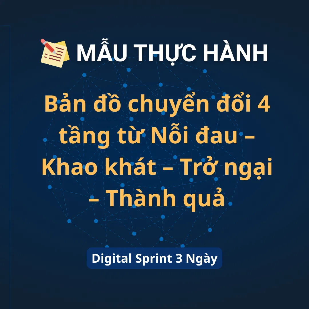 Công cụ: Bản đồ chuyển đổi 4 tầng từ Nỗi đau – Khao khát – Trở ngại – Thành quả mong muốn.
