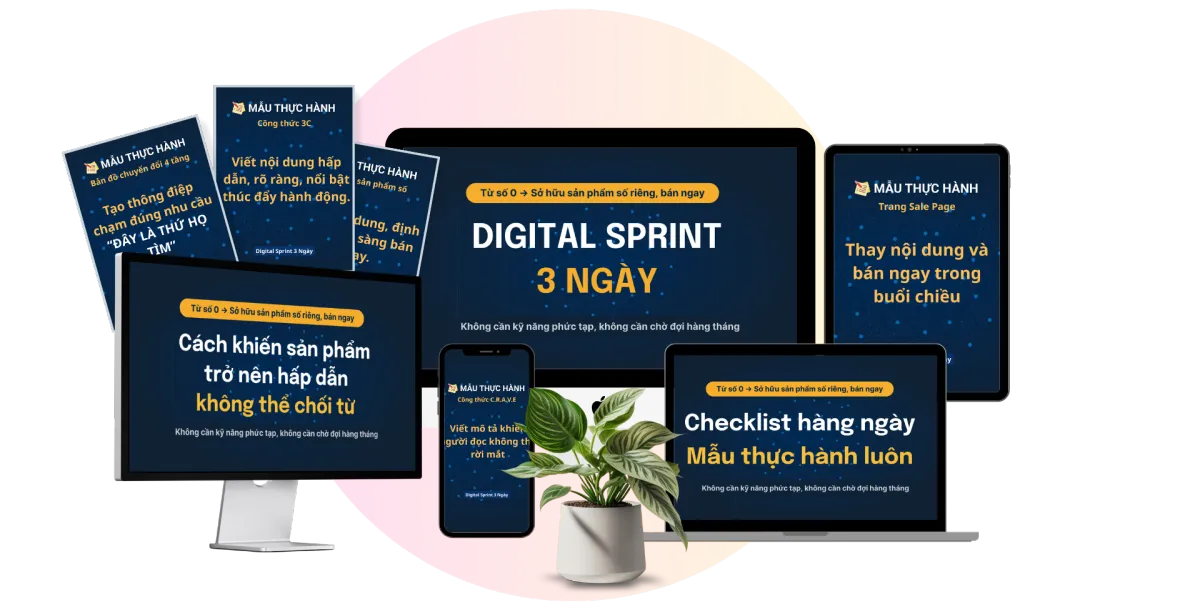Bây giờ, hãy nhận lấy "Digital Sprint 3 Ngày" thực hành để tạo cho riêng mình sản phẩm số, tung ra bắt đầu tạo về thu nhập cho riêng mình.